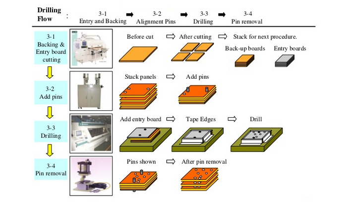 The lubricants prevent the drill bits from wearing out and lengthen the life of the drill bits. Furthermore, the stack height can be increased and the drilling cost will be decreased with LE SHEET. The lubricant melts and covers the drill bit while drilling. And the smear is prevented because the friction heat generation between the drill bit and the holes wall is prevented with this phenomenon. And also, the lubricants prevent the drill bits from wearing out and lengthen the life of the drill bits. Furthermore, the stack height can be increased and the drilling cost will be decreased with LE SHEET. Good quality through holes with less wall roughness and less micro crack between the glass fiber and the resin can be made with LE SHEET, because the debris can be smoothly discharged with the lubricant. In addition, the lubricant of LE SHEET is water soluble and easily removed by water rinse.